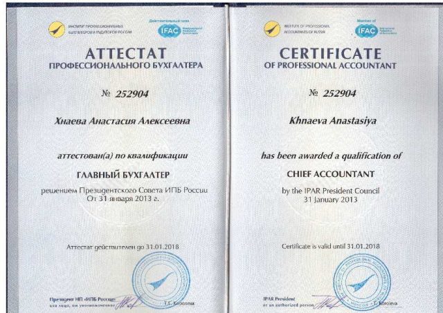 С 2013 г. являюсь действующим членом НП » Института профессиональных бухгалтеров и аудиторов России».